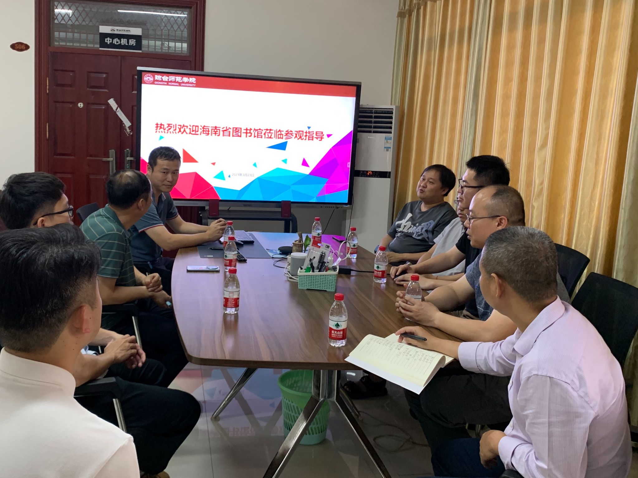3月23日上午,海南省图书馆耿洪旭主任,陈世俊副主任等一行4人莅临我校网络中心调研交流。我中心主任孙为,副主任李援等参加调研交流会。会上,孙为主任代表我中心,感谢省图书馆各人员来我中心调研与指导工作。李援副主任介绍了我校的网络建设情况、网络安全应用、重点设备安全防护、重保服务等情况。接着,双方就网络安全防护,技术应用进行探讨以及深入技术交流。