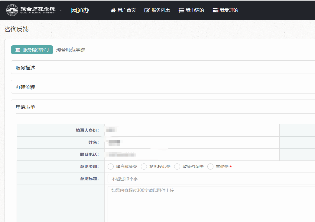 各教职工及同学:为深入贯彻落实我校为民办实事总体要求,全面收集学校教学科研、办公管理、师生服务等方面的意见和建议,提升学校综合治理水平,“校园个人门户”系统中咨询反馈功能已完成开发部署,并在“掌上琼台”同步上线,现正式进入试运行阶段。 附件: 咨询反馈使用手册 网络安全与信息化建设办公室 2025年11月7日